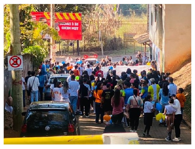 O dia 02 de julho foi marcado pela ‘II Caminhada Socioambiental e Pela Paz’, evento realizado pela Escola Estadual de Mário Campos-MG, que teve a participação do Projeto Social Joias, contando com alunos, colaboradores e demais dirigentes da instituição estudantil. Na data, todos os participantes da atividade tiveram como guia, elementos históricos, culturais, arquitetônicos, urbanísticos e ambientais do município mineiro.